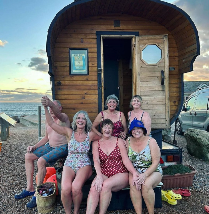 It's best to arrive 10 minutes before your sauna is due to begin. You can arrive in your bathing suit, change outside, or inside in our small changing room. The temperature of the sauna varies depending on the day, but we don't like to keep our sauna burning too hot- it's usually around 70°C. Bring a towel into the sauna to sit on and choose a spot- the higher bench is hotter. Listen to your body and leave the sauna when you feel it's time, without feeling pressured to stay longer than your comfortable with. You're encouraged to step outside for a breath of fresh air and to rehydrate whenever needed. Buckets of cold water are available for cooling down and you can also take a refreshing dip in the sea, lie in the tide, on the pebbles, or simply enjoy the cooler air outside. Take your time and move at your own pace, and remember not to overdo it. Balance is key for the best experience and to ensure you feel revitalised!